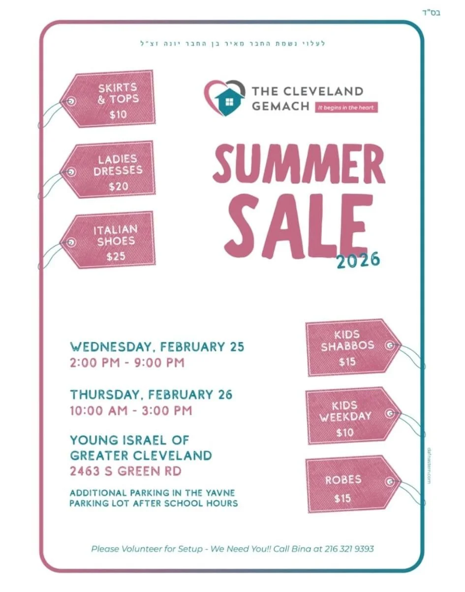 Please reach out if you have any questions regarding the Cleveland Gemach, volunteering and/or purchasing tickets to the Gemach Auction. Please include your information with any questions you may have. We would love to hear from you.